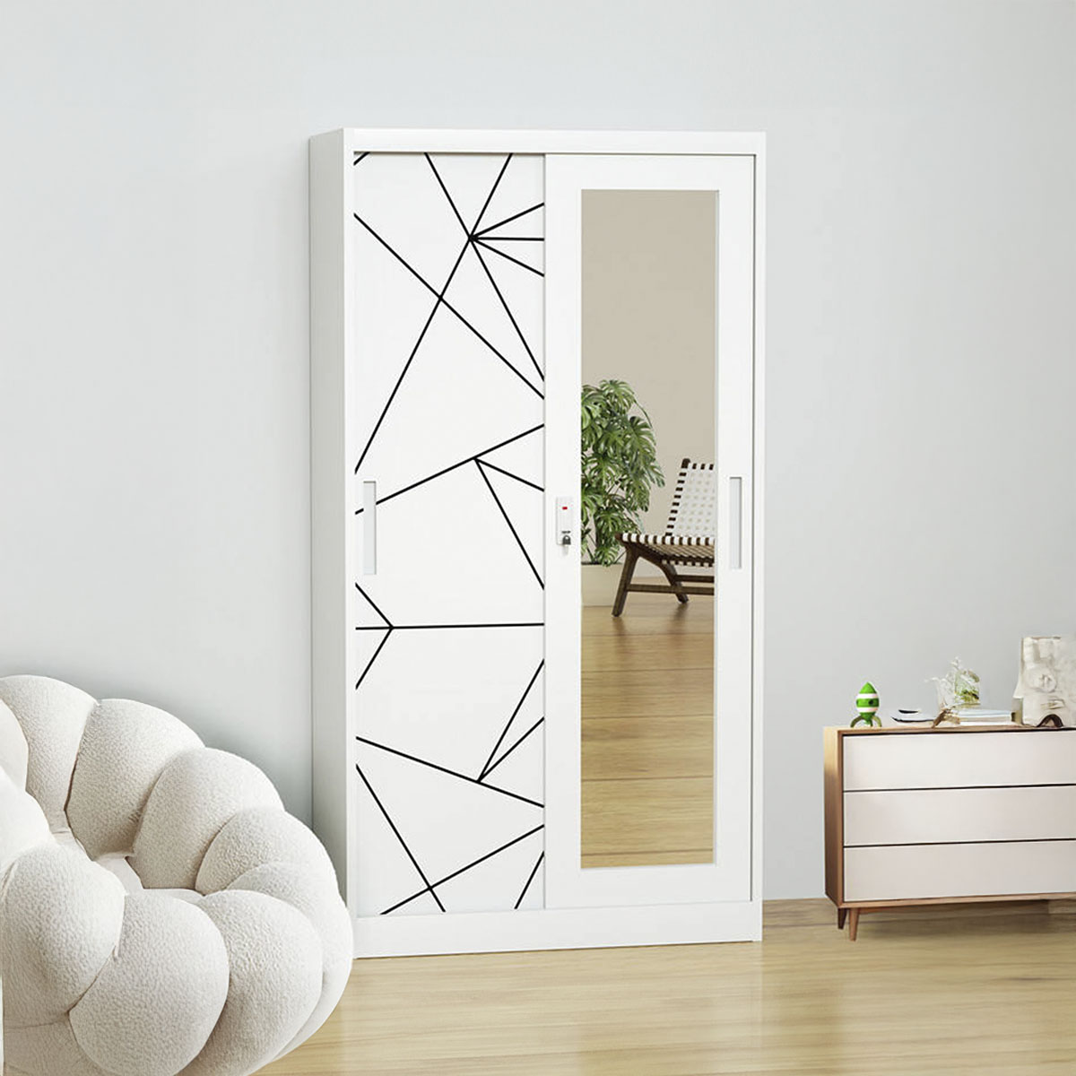El closet metálico IML CL-1 está diseñado para ofrecer orden, durabilidad y estética moderna en espacios residenciales. Fabricado en estructura metálica resistente y acabado en color blanco, integra dos puertas con espejo de cuerpo completo, ideales para ampliar visualmente el ambiente.