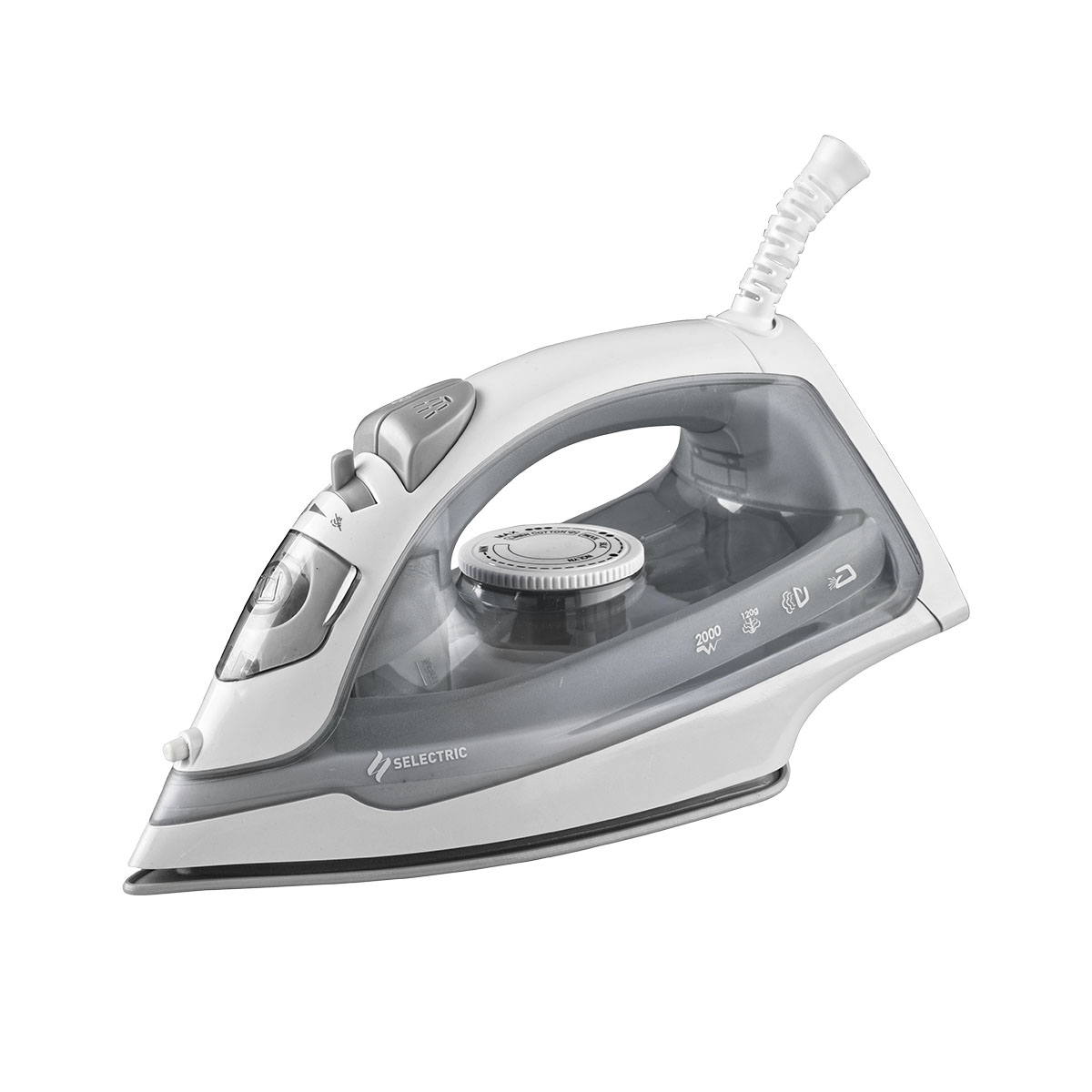 La plancha SELECTRIC PS-22G integra suela antiadherente de 200 mm, tanque de agua de 200 ml, rocío fino y vapor variable, garantizando un planchado práctico y seguro.
